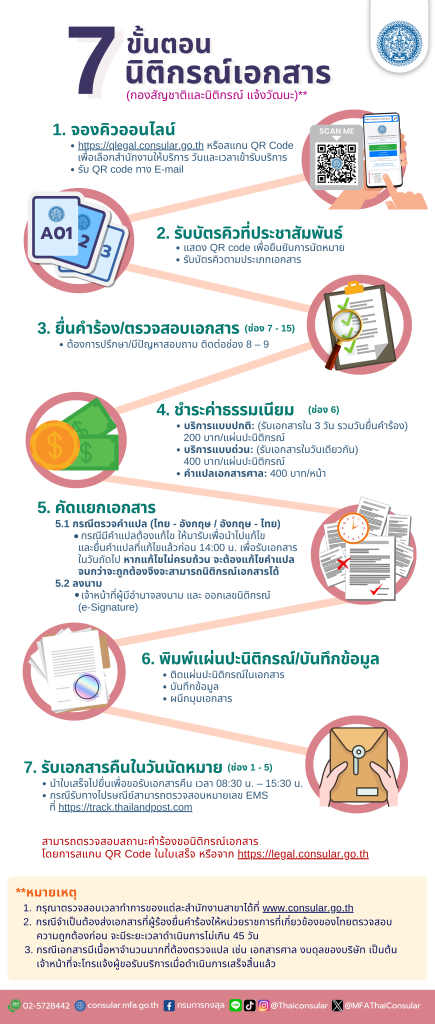 กรณีลูกค้าต้องการยื่นรับรองนิติกรณ์เอกสาร สามารถดูรายละเอียดได้ดังนี้